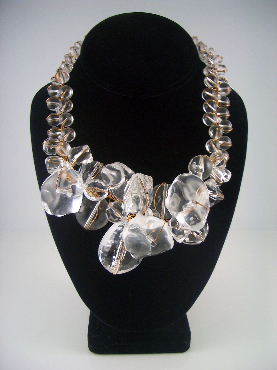 Clear resin nugget collar with "gold" wire by Abra Gorby